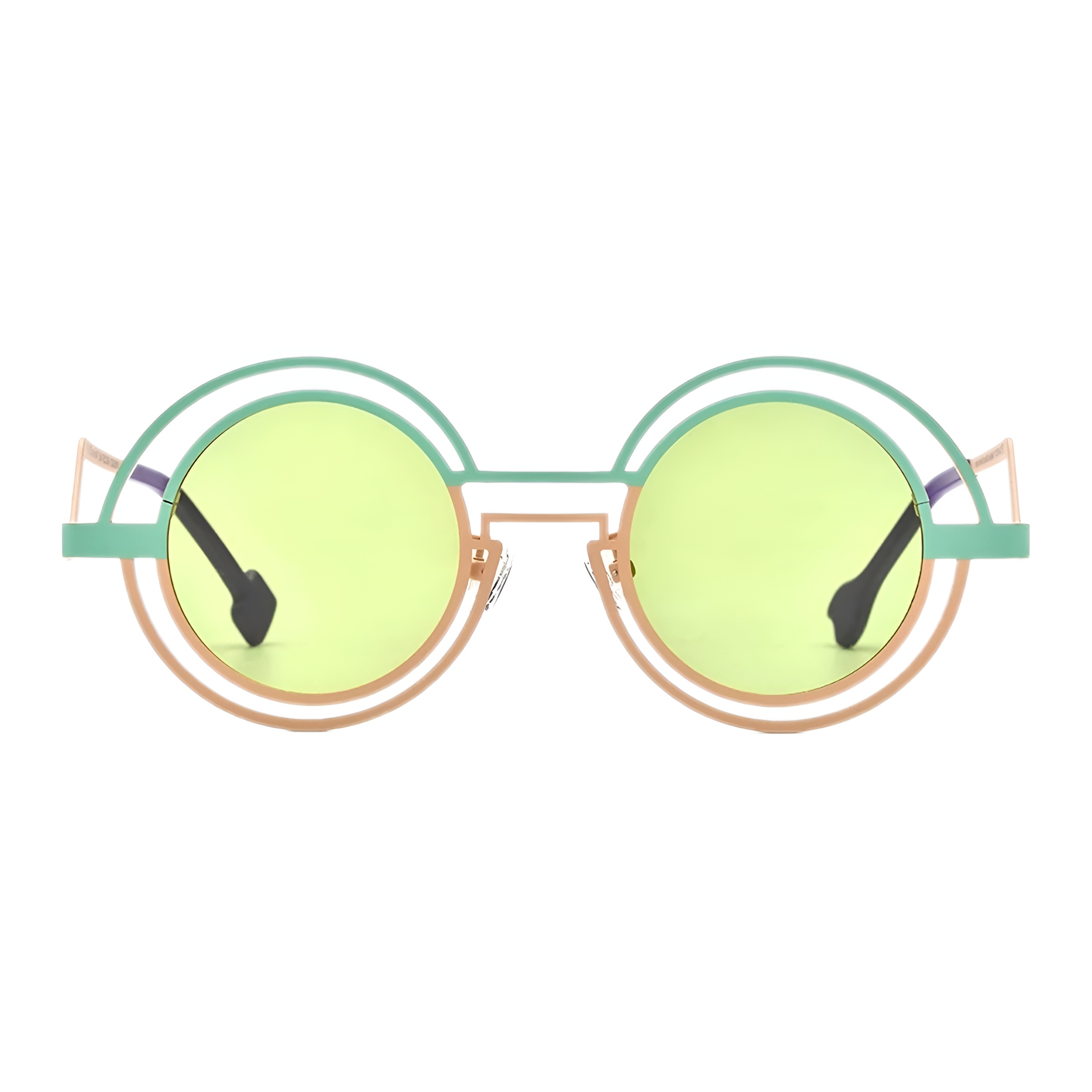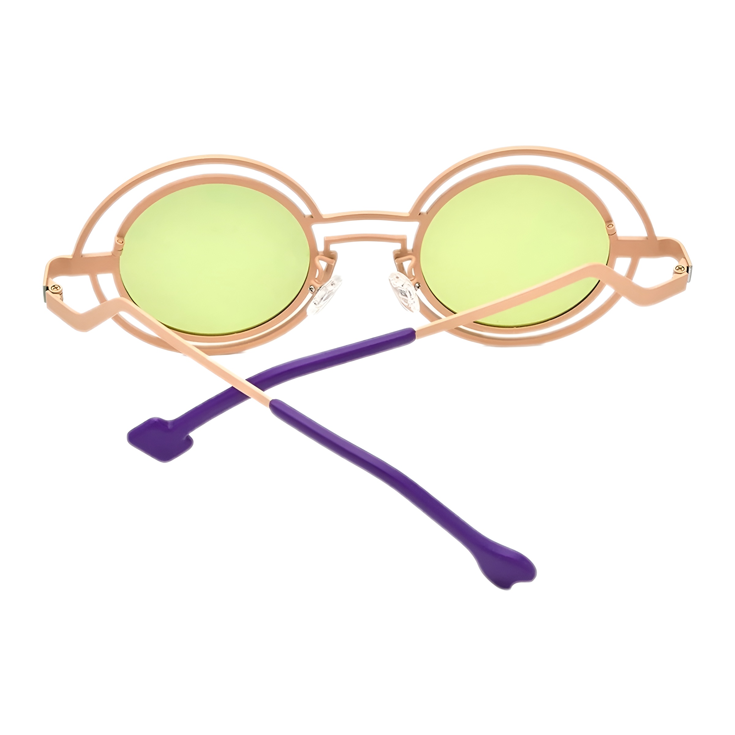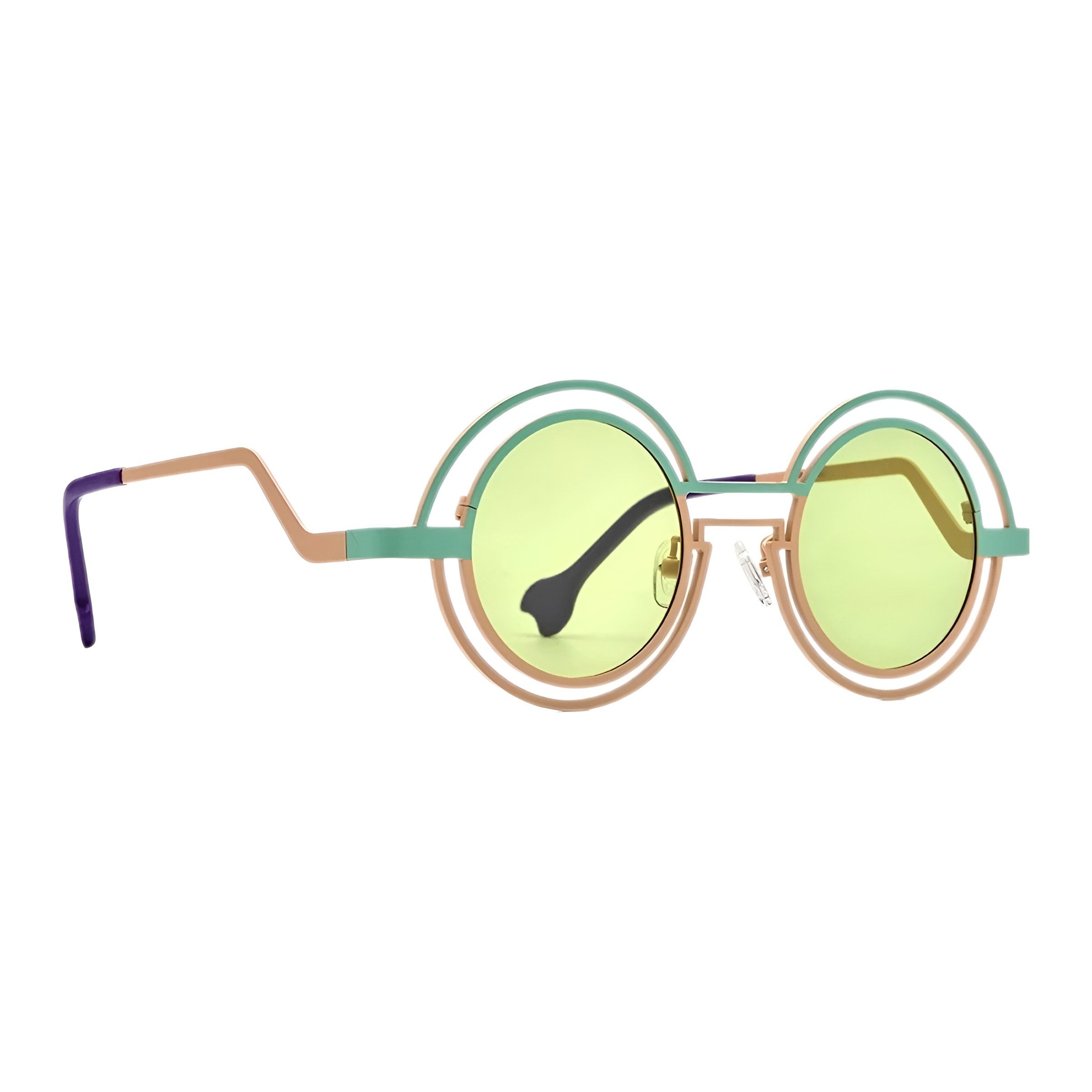 Plus qu’un accessoire, cette paire est une déclaration de style. Ses verres teintés d’un jaune-vert lumineux et ses détails originaux, comme les manchons violets, sont pensés pour celles et ceux qui osent. Une pièce de créateur qui ne laisse personne indifférent.