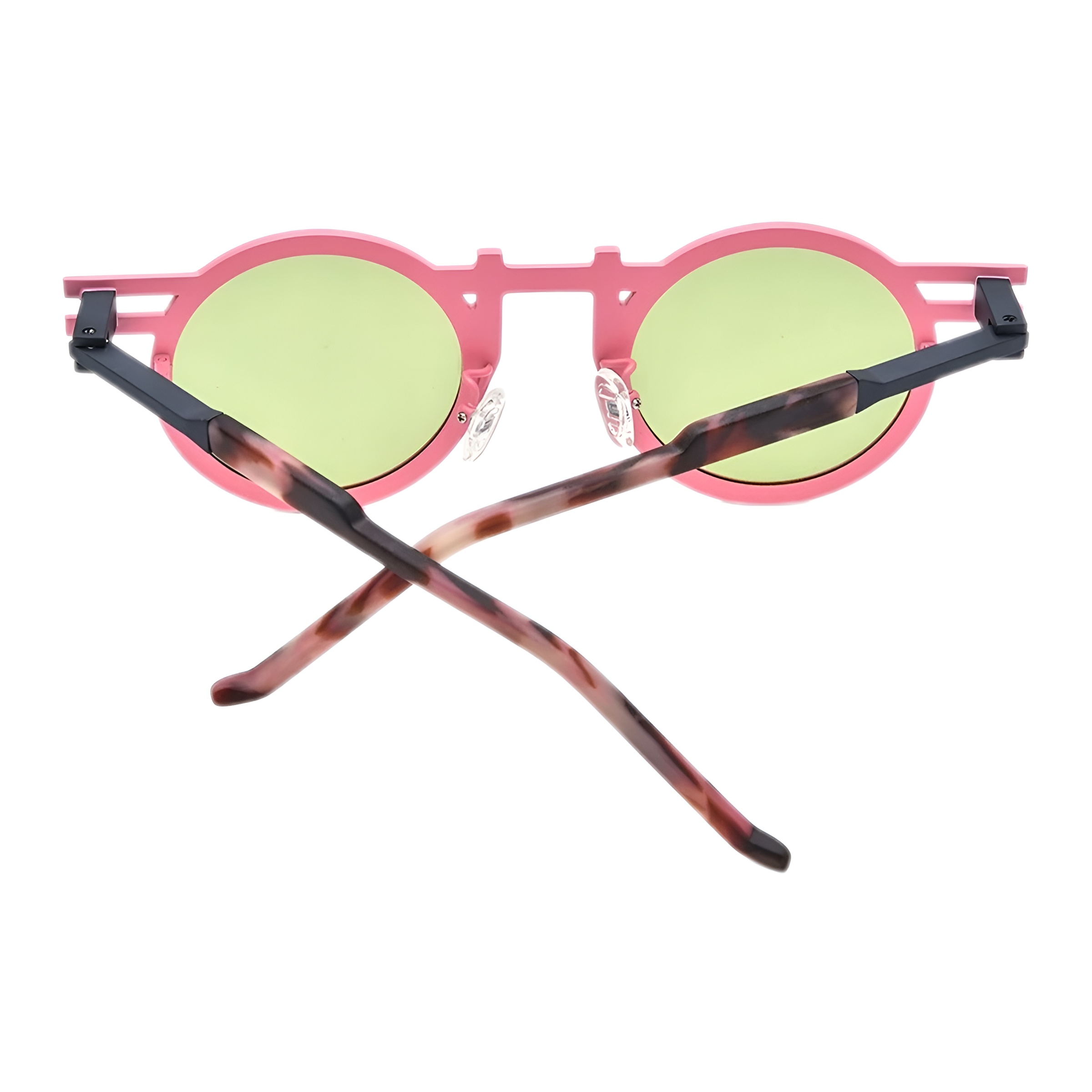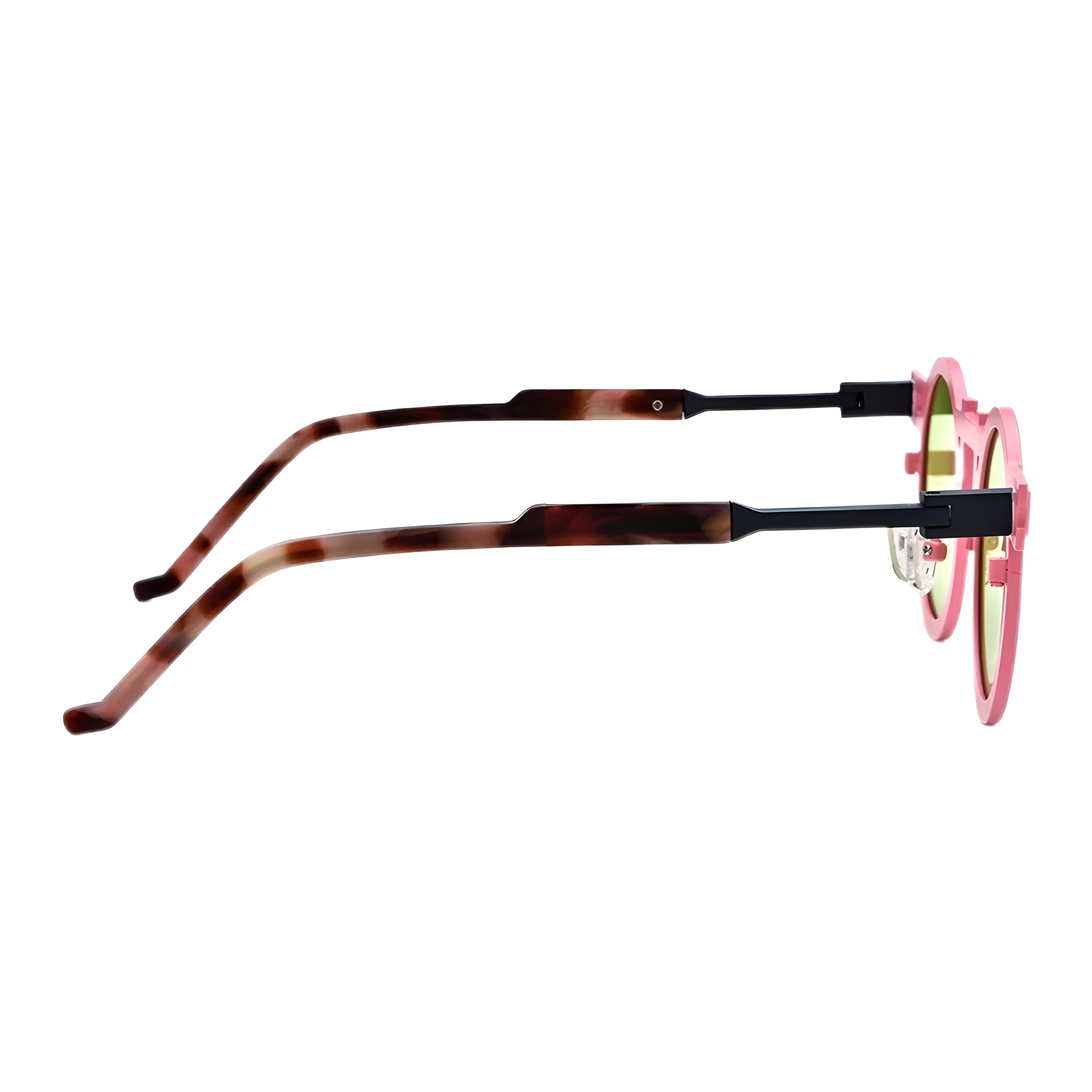 L’équilibre visuel est parfait grâce aux branches noires techniques qui s’affinent vers l’oreille. La touche finale est apportée par des manchons au motif écaille de tortue, ajoutant une note classique à cet ensemble résolument contemporain.