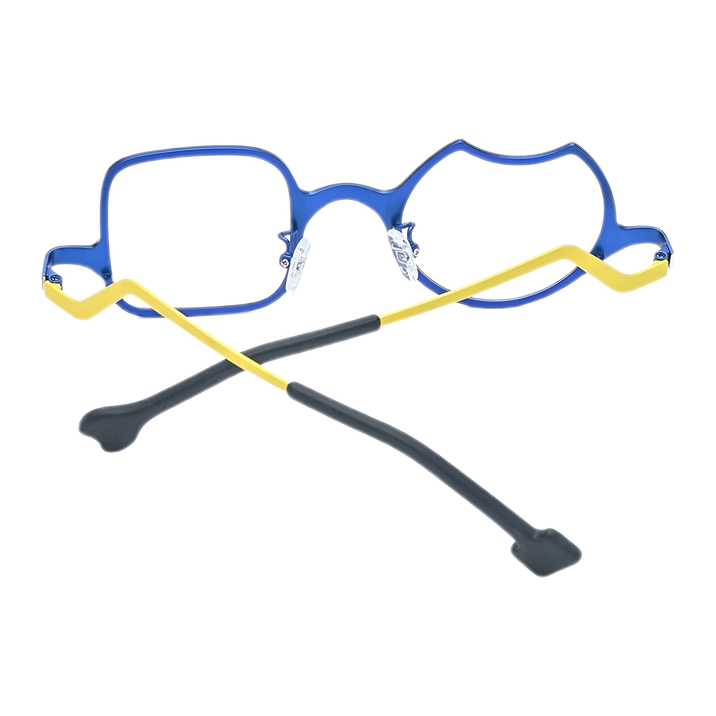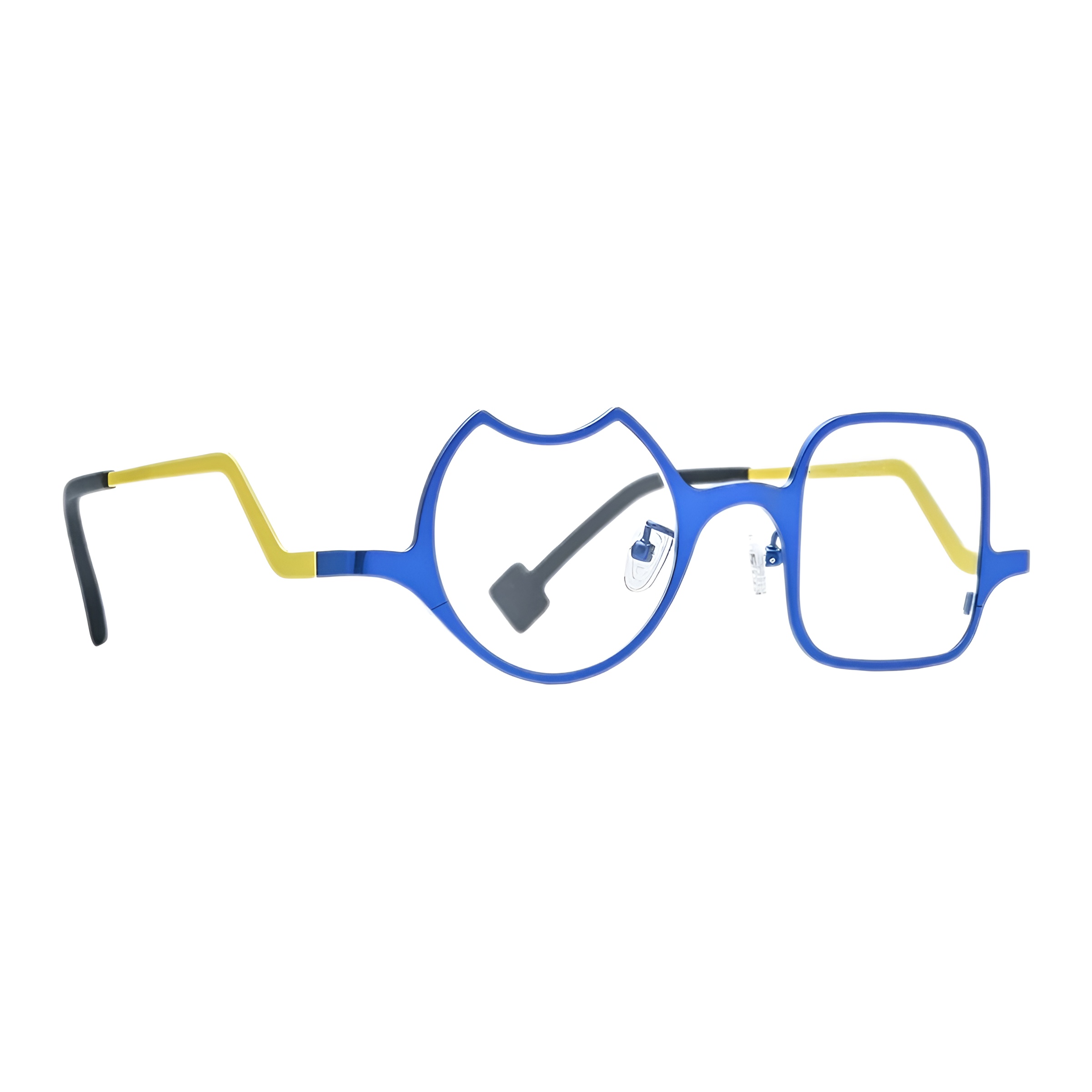 Le bleu électrique intense de la face est brillamment rehaussé par le jaune vif des branches. Ce duo de couleurs énergique apporte une touche de dynamisme et de modernité à votre visage. Une palette audacieuse pour une expression de soi vibrante et pleine de confiance.