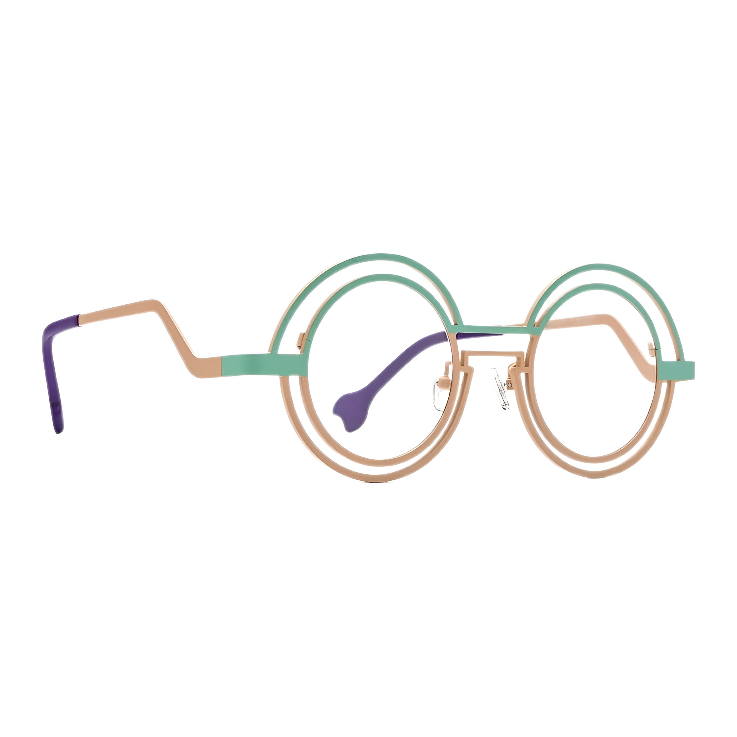 L’harmonie des couleurs est au cœur de ce modèle. Le vert menthe s’associe au beige poudré pour une base douce, tandis que les manchons violets apportent une touche de caractère inattendue. Cette palette tricolore est pensée pour illuminer le visage et compléter votre style avec subtilité.